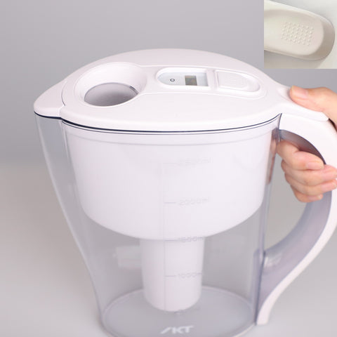• TOUCH-FREE: Push the thread at the lid you can easy to add water in it the pitcher to avoid pollution more from outside environment so the filter life has extended.Once the filter is change,press the button at the lid for 5 seconds,the counter set at max 150,number will decrease each time you open the gap. Electric counter make it more convenient to record time.