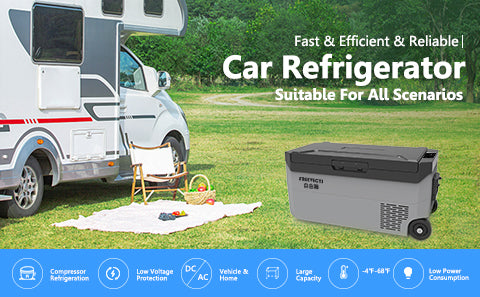 • 【37 Quart Large Capacity】FREEVECYS CR35 car refrigerator's exterior size is 31 × 14 × 14 inch, interior capacity is totally 35 Liter can hold 52 bottles of 330ml cola, or 27 bottles of 550ml water or 12 bottles of 750ml red wine, which allows to store a variety of foods and keep fresh for you and your family's outdoor travel.