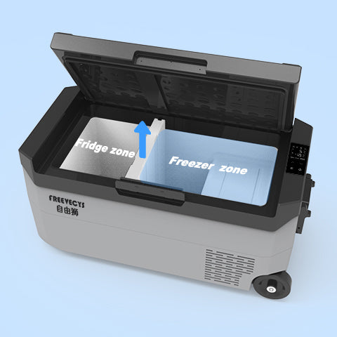 • 【Dual Zone Fast Cooling Down & Low Noise】Inside is divided into left 17 L(18 Quart) and right 18 L(19 Quart), you can control the temperature of each independently. With a reliable and powerful compressor, fast cooling down to -4℉ within 30 mins in "MAX" mode while controls the noise below 45db, operating power is 45w. No matter indoor or outdoor, this fridge keeps fresh, quiet and saves energy.