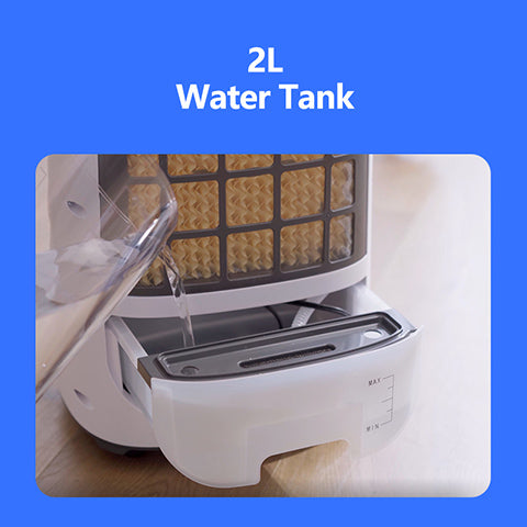 - 【Air Cooler】 Do you think some portable AC is really portable? Can not move at all. Unlike that, IKT portable evaporative air cooler can be a great replacement in some cases. Add both water and ice packs on the bottom or upper, switch to cooling mode then the fan will act like an air condtioner, air will be cool. Feeling tired of cooling fan and air conditioner? Try this.(works better in dry area and rooms with air conditioner)