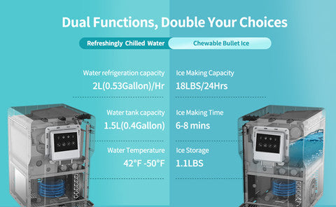 - 【Compact and Space-Saving】 The VECYS Countertop 2-in-1 Water Cooler Dispenser with Built-in Ice Maker features a compact and space-saving design, making it a perfect fit for any kitchen or office area where space is limited.