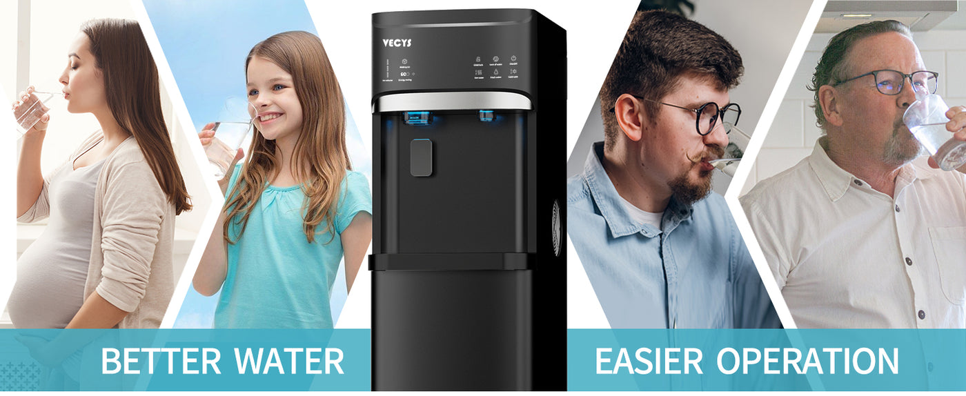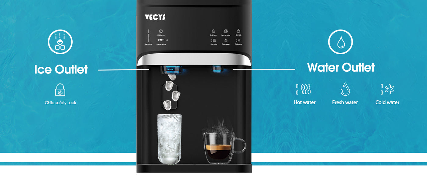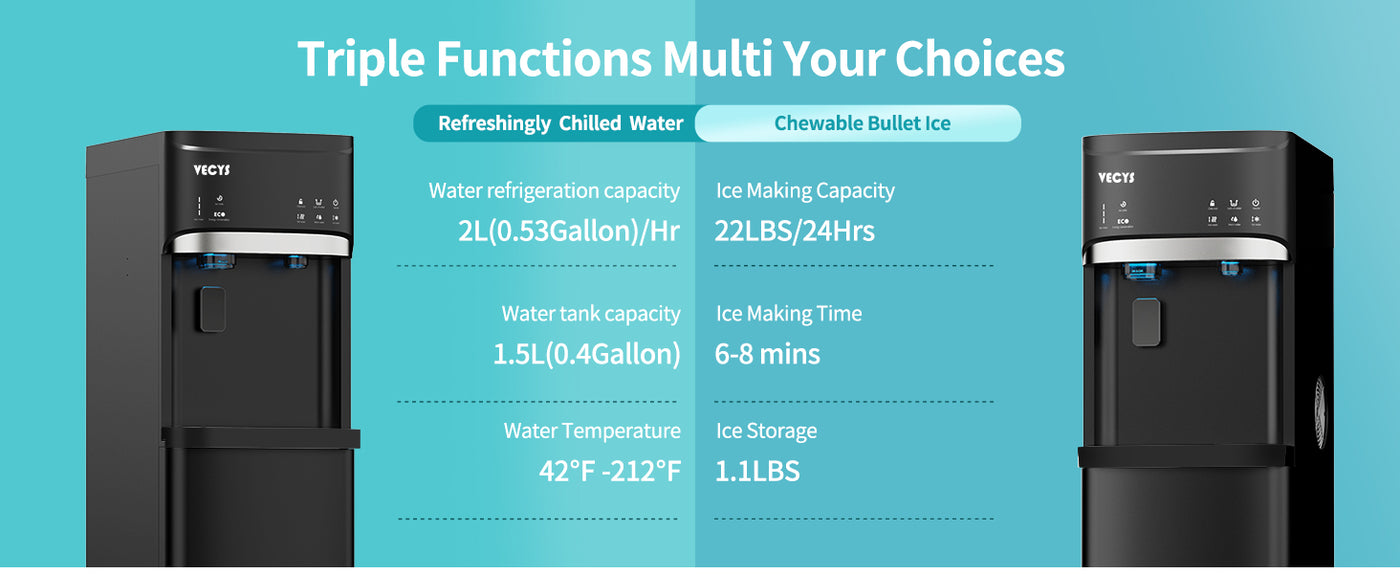 - 【What is a 3-in-1 Water Dispenser? 】Did you watch the product video in the main image? The one you are currently browsing is the LYCZ628 from VECYS. This represents the latest technological upgrade in bottom loading water dispensers available on the market, requiring strong technical expertise for its production. It's called 3-in-1 because it combines the functions of providing cold water, hot water, and ice. These three functions can operate simultaneously to meet your various needs.