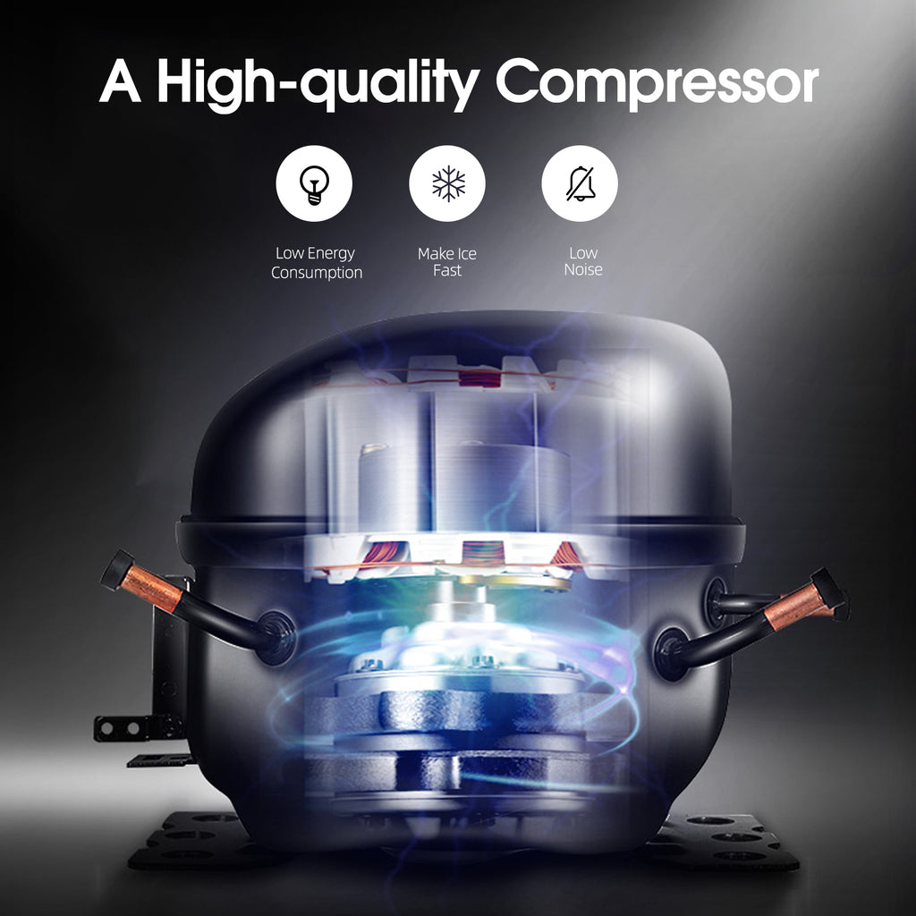 - 【Efficient and Energy-Saving Design】Our 3 in 1 ice maker with hot cold water dispenser's ice-making mechanism doesn't rely on electronic refrigeration but instead features a high-performance compressor, ensuring superior efficiency. This design, coupled with professional manufacturing processes, guarantees outstanding and stable product performance. The machine also has eco statue.