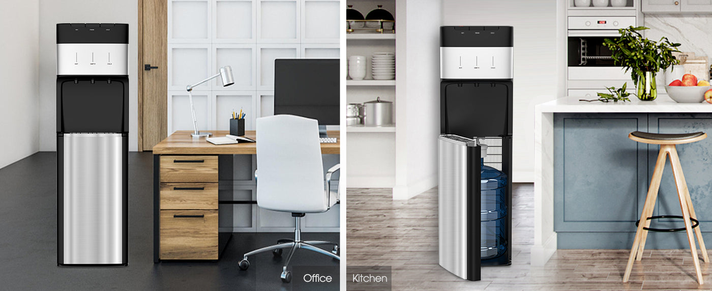 • 【Stainless Steel Panel Design】The water coolers for home 5 gallon bottom loader features a modern and durable stainless steel panel that enhances its aesthetic appeal while providing long-lasting durability. The sleek design seamlessly fits into any space, adding both style and function to your kitchen or office.